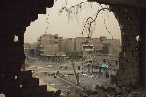 Deir el-Zor… 4 Nisan 2013… Bir tank ya da havan mermisinin yıktığı bina cephesinden kasaba meydanına hüzünlü bir bakış… Harap haldeki meydanda, sakince yürüyen insanlar görülüyor…