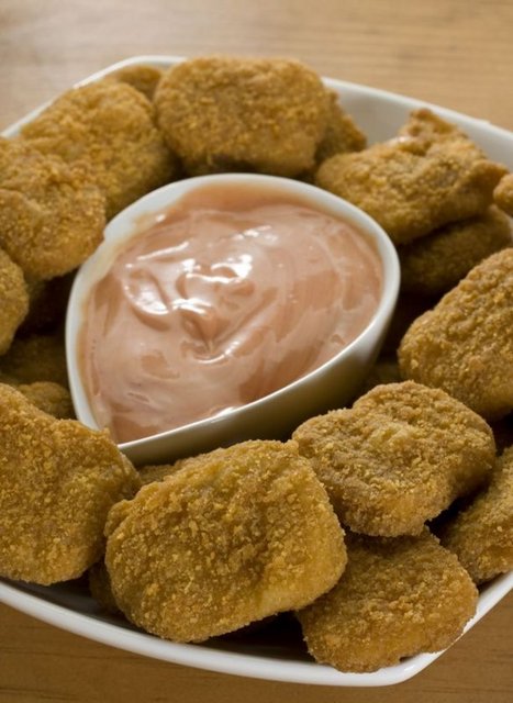Yeniden şekillendirilmeden önce, tavuk nugget, sosis, salam ve sucuk gibi gıdalar pembe hamurlu iğrenç bir çamur gibi görünüyor.