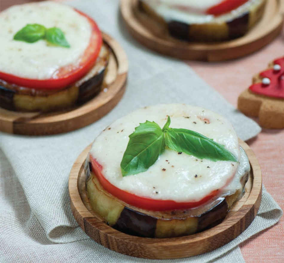 1 Patlıcanı alacalı soyup yuvarlak dilimleyin. Zeytinyağında her iki tarafını da kızartın. Yağlı kağıt üzerine alıp fazla yağını çektirin. Domates ve mozarella peynirini yuvarlak dilimleyin.