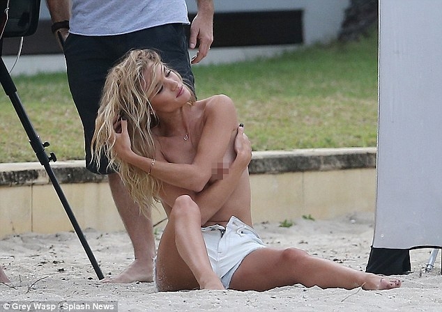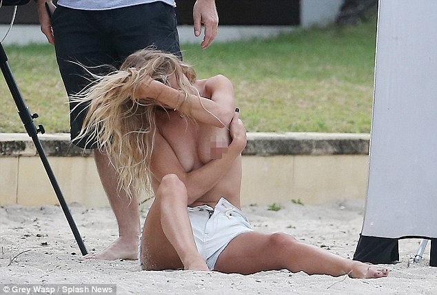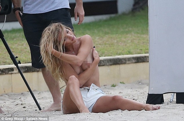 Üstsüz pozlarının çekimi sırasında göğüslerini elleri ile kapatmaya çalışan Whiteley, frikik vermekten kurtulamadı.