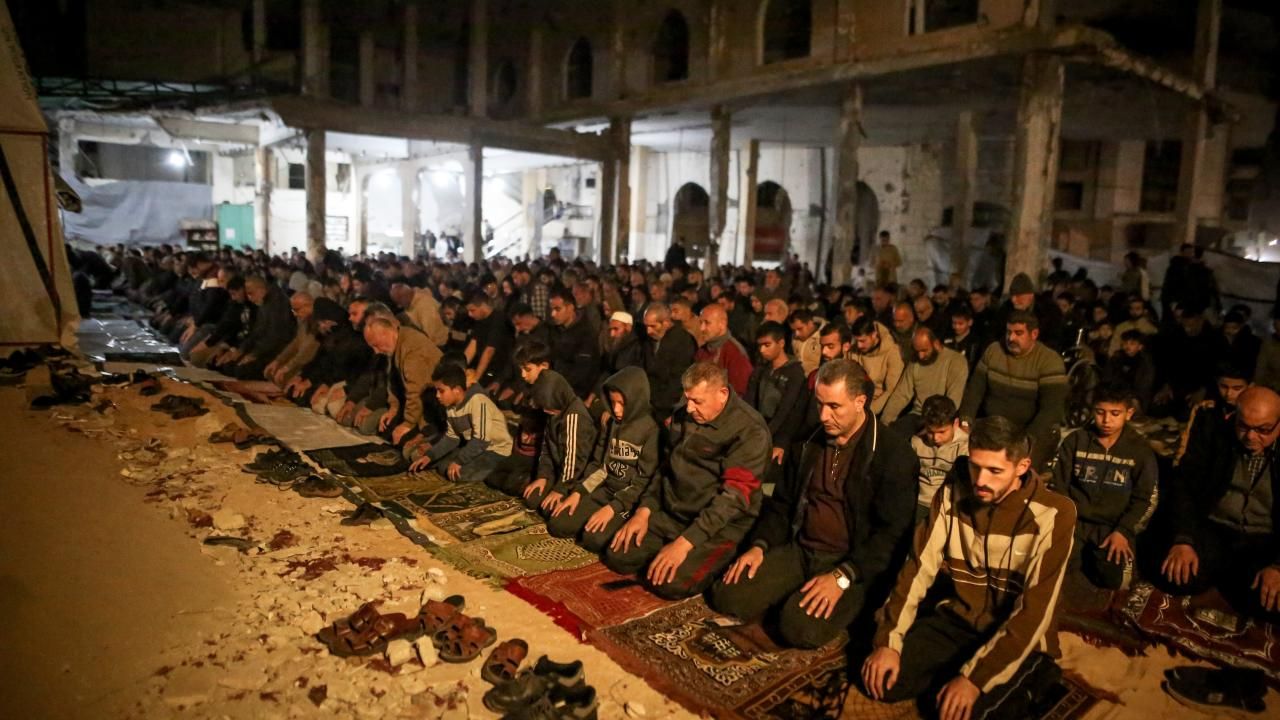 Gazze Şeridi'ndeki Müslümanlar, 2 yıl süren ağır bombardımana son veren ateşkesten sonra bu yıl teravih namazını bombalanan camilerin enkazlarında veya çadır kamplarındaki çadır mescitlerde kıldı.