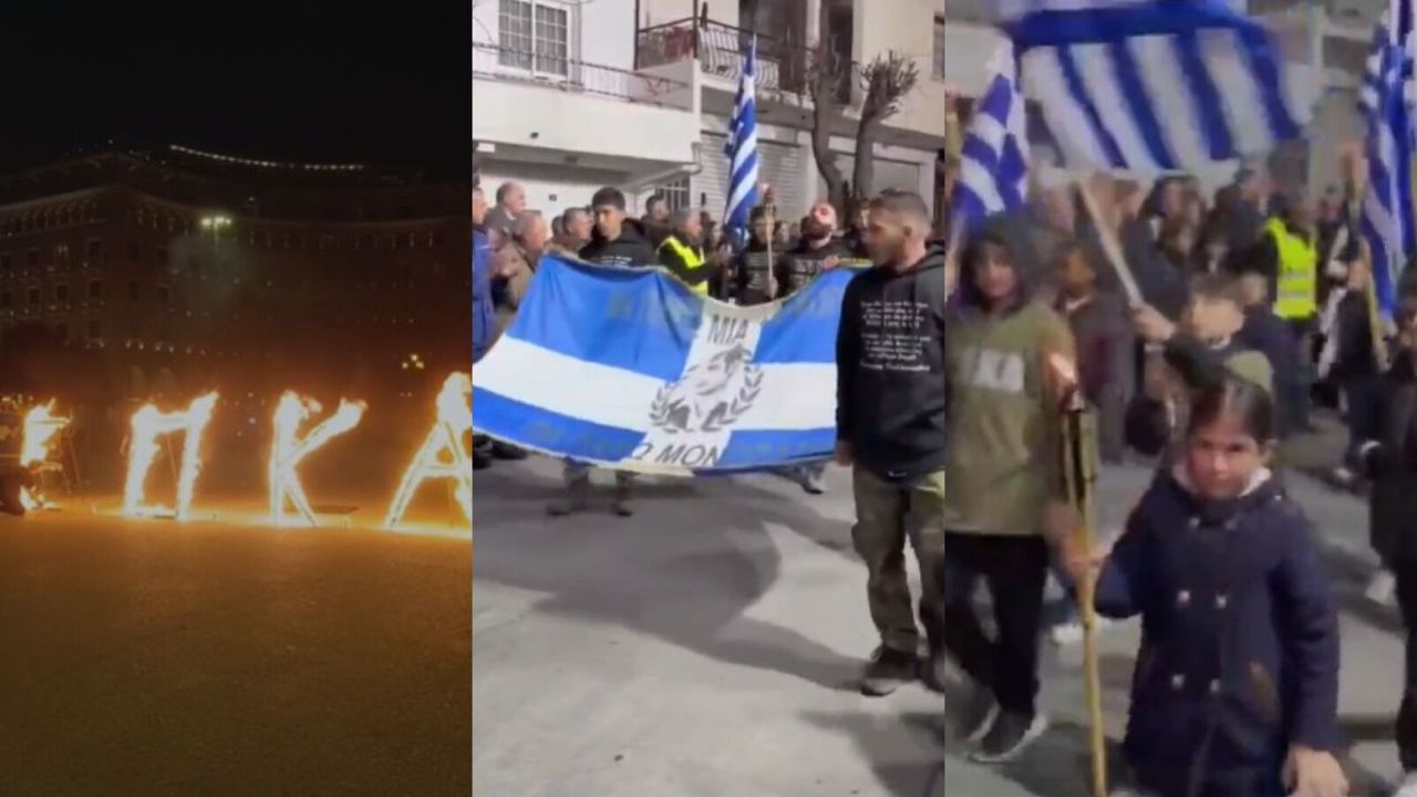 Paylaşılan görüntülerde, “Türkler barbarlar katiller”, “EOKA, tekrar kazanacağız”, “Kıbrıs Yunandır” şeklinde nefret içerikli sloganların atıldığı görüldü.