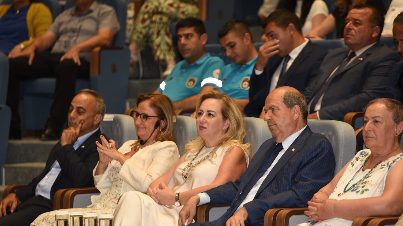 Cumhurbaşkanı Ersin Tatar konuşmasının başında, Cumhuriyet Yerleşkesi’ndeki cami, milli kütüphane, amfitiyatro gibi binaların açılışının 20 Temmuz’da yapılacağını duyurdu.