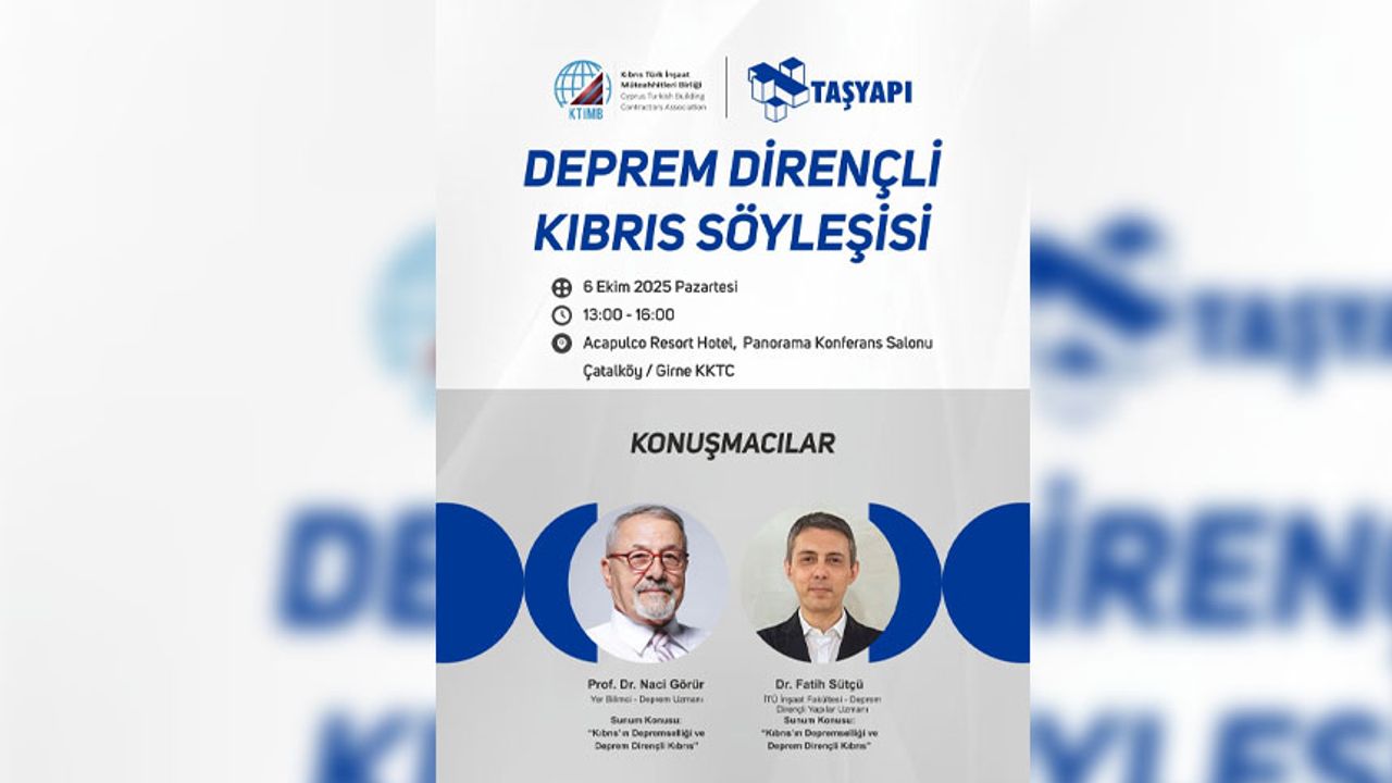 Kıbrıs Türk İnşaat Müteahhitleri Birliği (KTİMB), Taşyapı İnşaat Taahhüt Sanayi ve Ticaret A.Ş. iş birliğinde düzenlenecek ‘Deprem Dirençli Kıbrıs Söyleşisi’nin detayları şöyle: