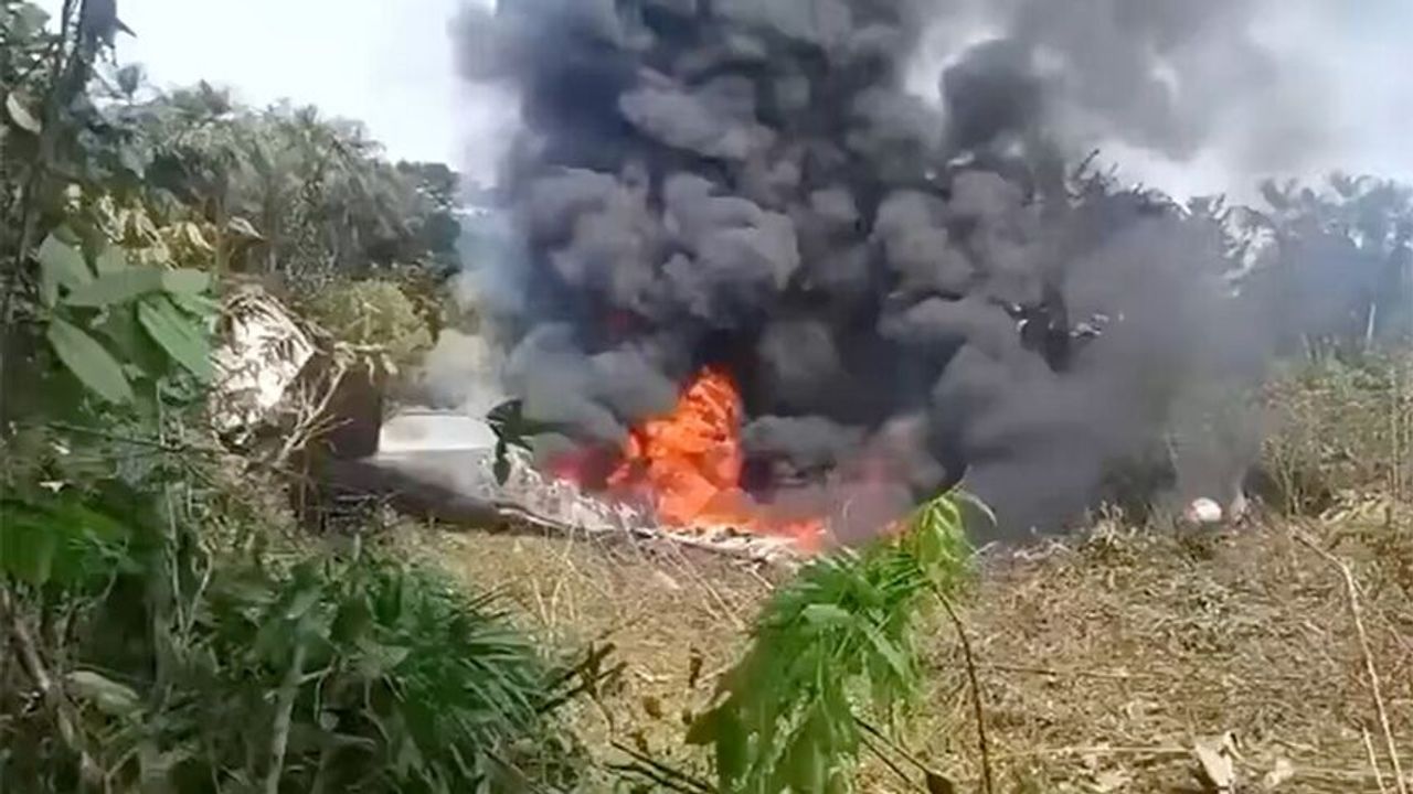 Sosyal medyaya yansıyan görüntülerde, nakliye uçağının düştüğü bölgede siyah duman ve alevlerin yükseldiği görülüyor.