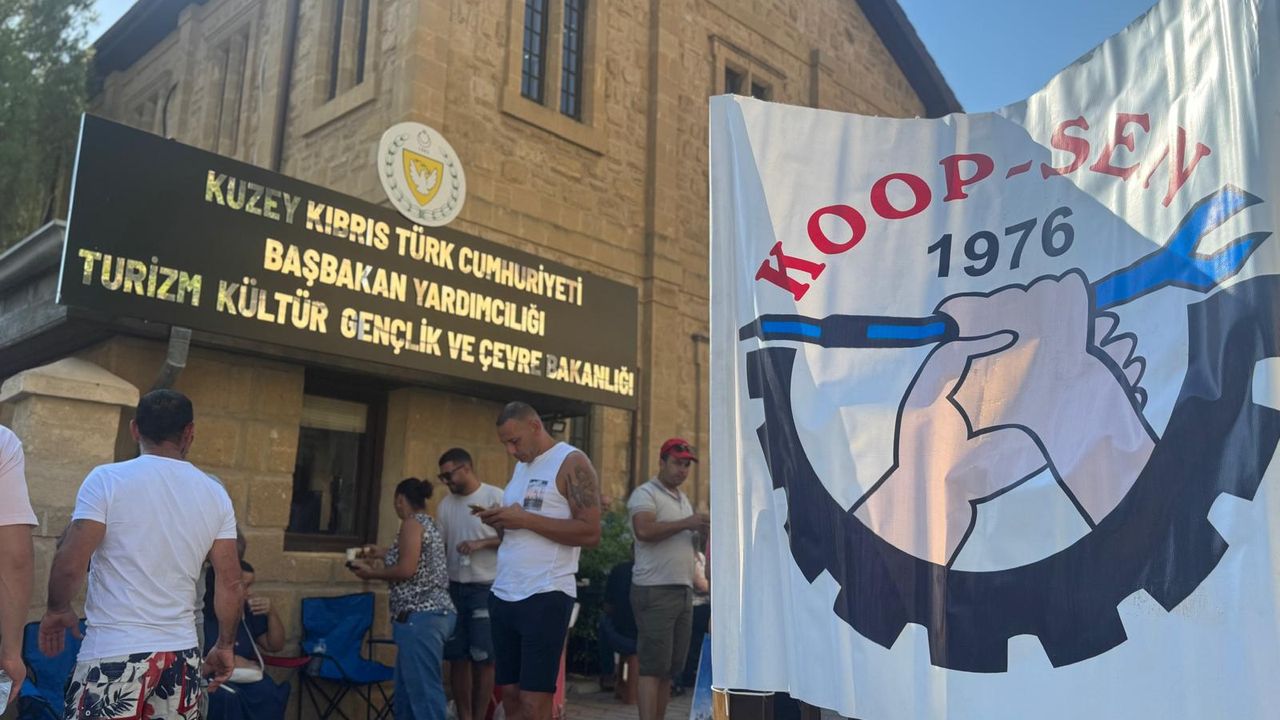 Çalışanların, Başbakanlık ve Kooperatif Şirketler Mukayyitliğinin ardından dün Başbakan Yardımcılığı, Turizm, Kültür, Gençlik ve Çevre Bakanlığı önünde başlattıkları eylemleri, bugün de yine bakanlık önünde devam ediyor.