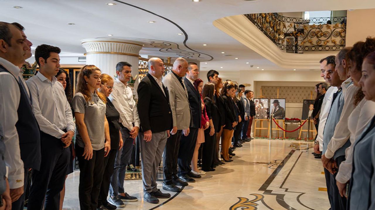 Sabah erken saatlerde düzenlenen törende otel yönetimi ve çalışanlar bir araya geldi. Saatler 09.05’i gösterdiğinde, siren sesleri eşliğinde saygı duruşunda bulunuldu ve ardından hep birlikte İstiklal Marşı okundu. Duygu dolu anların yaşandığı törende, Atatürk’e olan sevgi, minnet ve bağlılık bir kez daha dile getirildi.