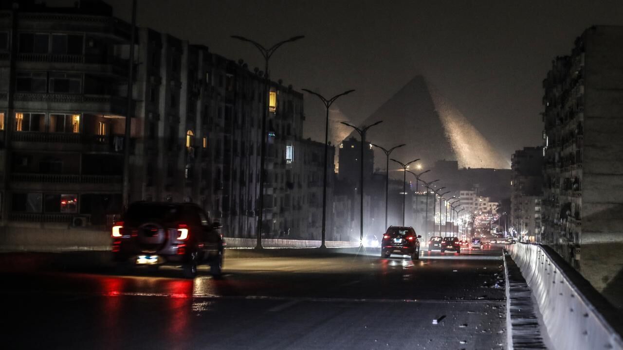 Kahire'nin merkezindeki 6 Ekim Köprüsü'nde yer alan reklam panolarının aydınlatmalarının da kapatıldığı görüntülendi.