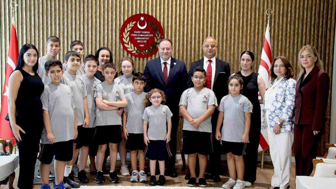 Öztürkler, Özel Eğitim Vakfı (ÖZEV) Başkanı Ersin Görsay ile beraberindeki öğrenci ve öğretmenleri Meclis Şeref Salonu’nda kabul etti.
