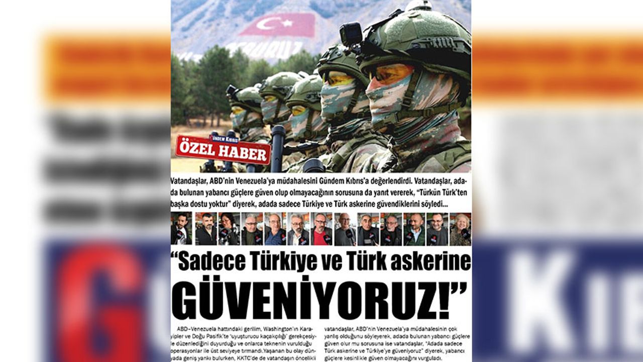 Gündem Kıbrıs’a konuşan vatandaşlar, ABD’nin Venezuela’ya müdahalesinin çok yanlış olduğunu söyleyerek, yapılan girişimin petrol için olduğunu düşündüklerini söyledi. Vatandaşlar, yapılan müdahale karşısında dünyanın sessiz kalmasını ise “Hayret verici” olarak değerlendirdi. Adada bulunan yabancı güçlere güven olur mu sorusuna ise vatandaşlar, “Adada sadece Türk askerine ve Türkiye’ye güveniyoruz” diyerek, yabancı güçlere kesinlikle güven olmayacağını vurguladı.