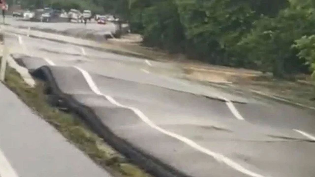 Gökçebey ilçesinde meydana gelen sağanak yağış sonrası Zonguldak-Ankara karayolu Örmeci köyü mevkisinde yoldaki asfaltta bozulmalar ve yarıklar oluştu.