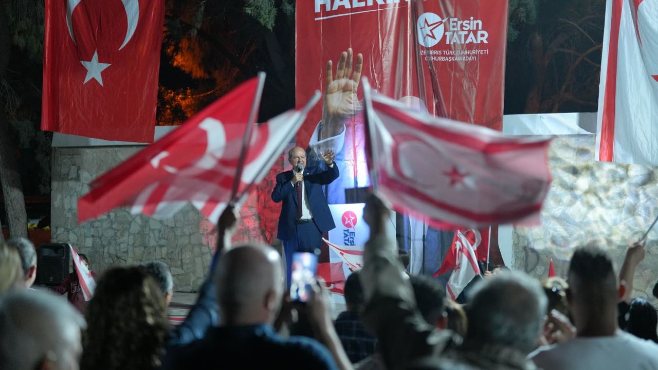 Tatar ayrıca, “Karşı taraftakilerin meydanlarında ne Türkiye Cumhuriyeti bayrağı var, ne Kuzey Kıbrıs Türk Cumhuriyeti bayrağı var. Çünkü akılları karışık... Kime hizmet ettiklerini bilmeden siyaset yapanlar bu ülkede yok olmaya mahkûmdurlar. İnşallah bunları federasyon gibi 19 Ekim günü sandığa gömeceğiz." ifadelerini kullandı.