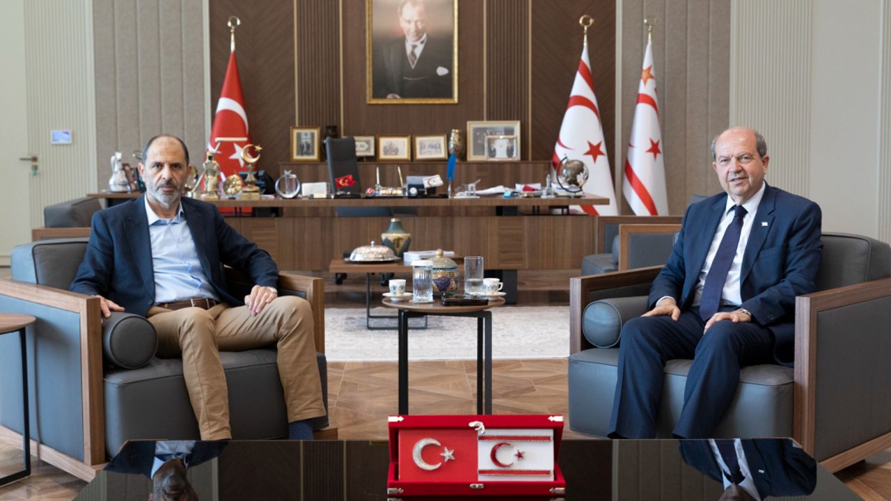 Cumhurbaşkanlığı’nda gerçekleşen görüşmede, Rum yönetiminin KKTC sınırları içinde mülkiyet hakkını kullanan bireyleri hedef alan uygulamaları, hukuk dışı tutuklama girişimleri ve uluslararası mekanizmaları siyasileştirme çabalarının ele alındığı ifade edilen açıklamada, “Görüşme, bu baskıcı siyasete karşı gösterilmesi gereken duruşun istişare edildiği önemli bir temas oldu.” denildi.