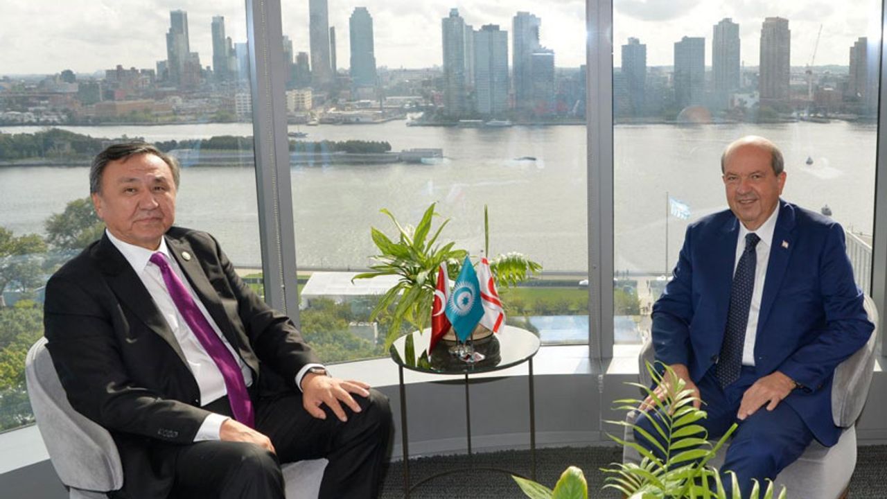 Cumhurbaşkanlığı'ndan verilen bilgiye göre, New York’ta Türkevi’nde Kuzey Kıbrıs Türk Cumhuriyeti Temsilciliği’nde gerçekleşen kabulde, Türk Devletleri Teşkilatı Genel Sekreteri Kubaniçbek Ömüraliyev’e Proje Direktörü Ersin Aydoğan eşlik ederken, Dışişleri Bakanı Tahsin Ertuğruloğlu, Dışişleri Bakanlığı Müsteşarı Mustafa Lakadamyalı, New York Temsilcisi Mehmet Dana ve Birinci Sekreter Çağrı Kalfaoğlu da toplantıda hazır bulundu.