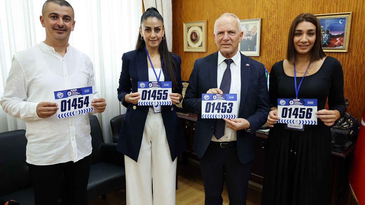 Makamında Lefkoşa Türk Belediyesi’nden organizasyon yetkililerini kabul eden Töre, 1453 yazan göğüs numarası aldı.