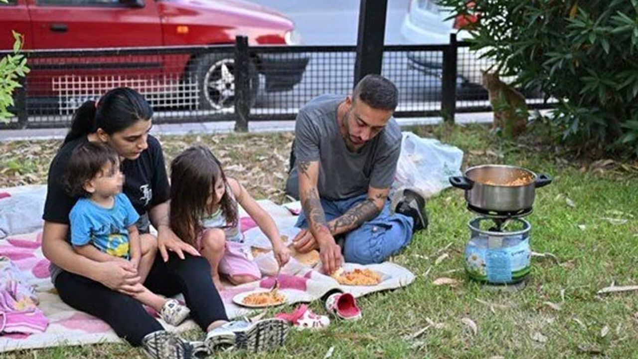 Yemeklerini de küçük tüpleriyle parkta yapan aile, yetkililerden kendi bütçelerine uygun bir ev ve iş istiyor.