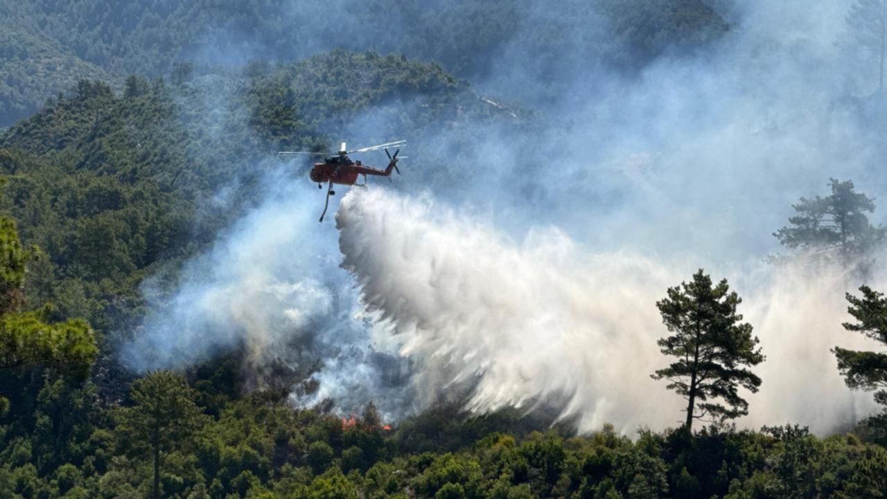 Alevlere, 2 helikopter, 7 arazöz, 8 iş makinesi ve 59 personelle havadan ve karadan müdahale sürüyor.